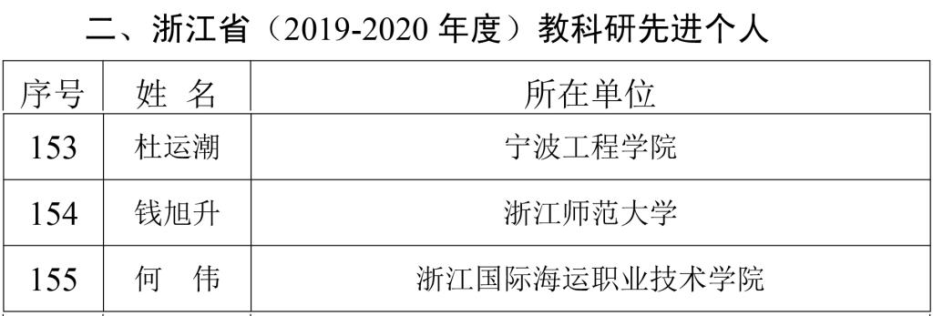 近日,经浙江省教育科学研究院、浙江省教育科学规划领导小组办公室组织评审和公示,我校荣膺2019—2020年度“浙江省教科研先进集体”称号,教师何伟获“浙江省教科研先进个人”称号。