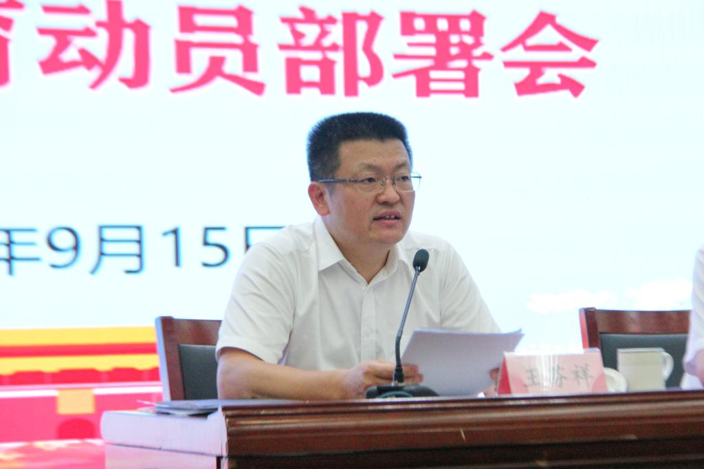 9月15日上午,校党委在图书馆四楼报告厅召开学习贯彻习近平新时代中国特色社会主义思想主题教育动员部署会。省委第二批主题教育第九巡回督导组副组长王芬祥、学校党委书记苏为泽出席会议并在主席台就坐。