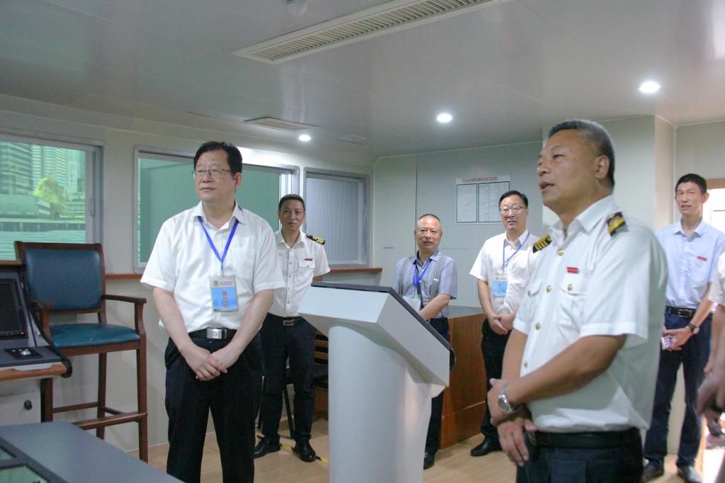 调研组一行参观了学校航海模拟器、游艇模拟器、轮机模拟器和国家级航海虚拟仿真中心,深入了解我校的办学条件、实习实训、人才培养和产教融合等方面工作开展情况。