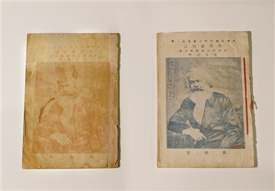 图为中共一大会址纪念馆保存的1920年8月(左)和9月出版的《共产党宣言》中文全译本。新华社记者 刘颖 摄