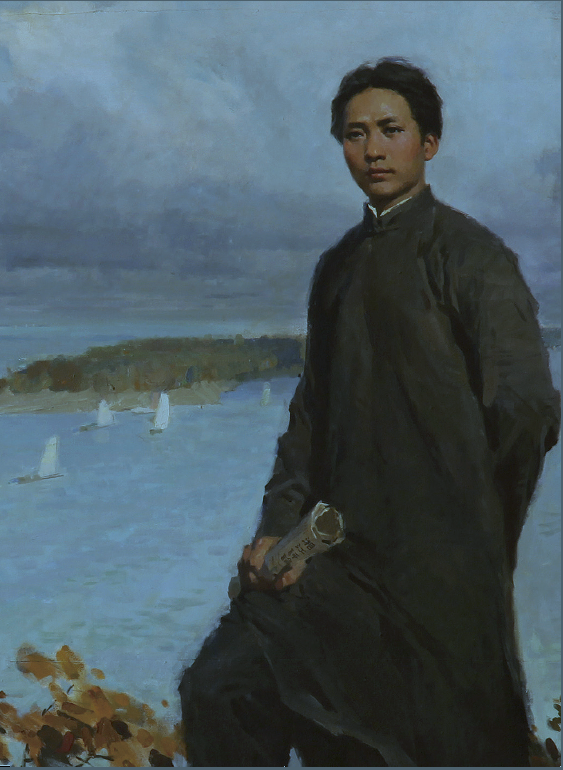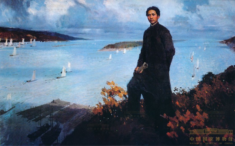 这幅油画采用独特的视角,兼具“历史肖像”与“风景画”的特点。壮阔的江面上千帆竞发、百舸争流,令人心旷神怡。天空浩渺无涯、云谲波诡,徒增世事变幻莫测的悬念。毛泽东手握报刊,坚定成熟、凝神深思的沉静表情与江上的繁忙形成了“动”与“静”的一组对比。画作艺术化展现出人物胸中激荡着时代风云,有力地衬托出主人公“沧海横流安足虑,世事纷纭从君理”的胸襟胆略与远见卓识。